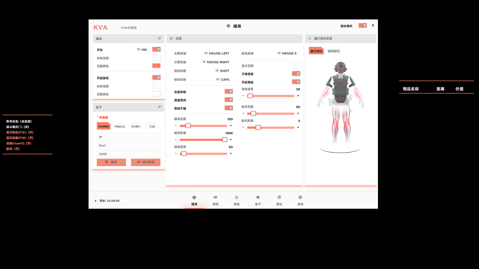 自瞄目前推荐适配盒子:kmbox、net、makcu、KMBOXB+、catbox 自瞄设置越大越锁